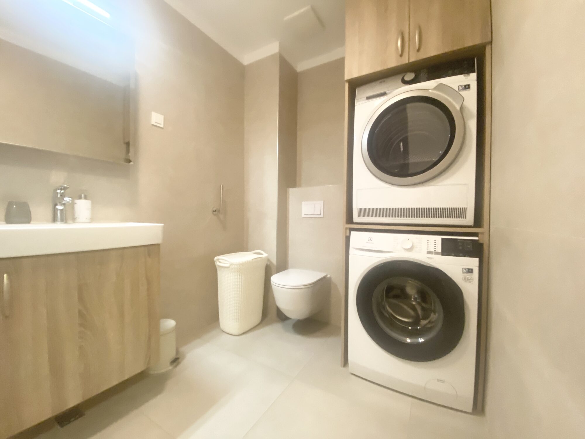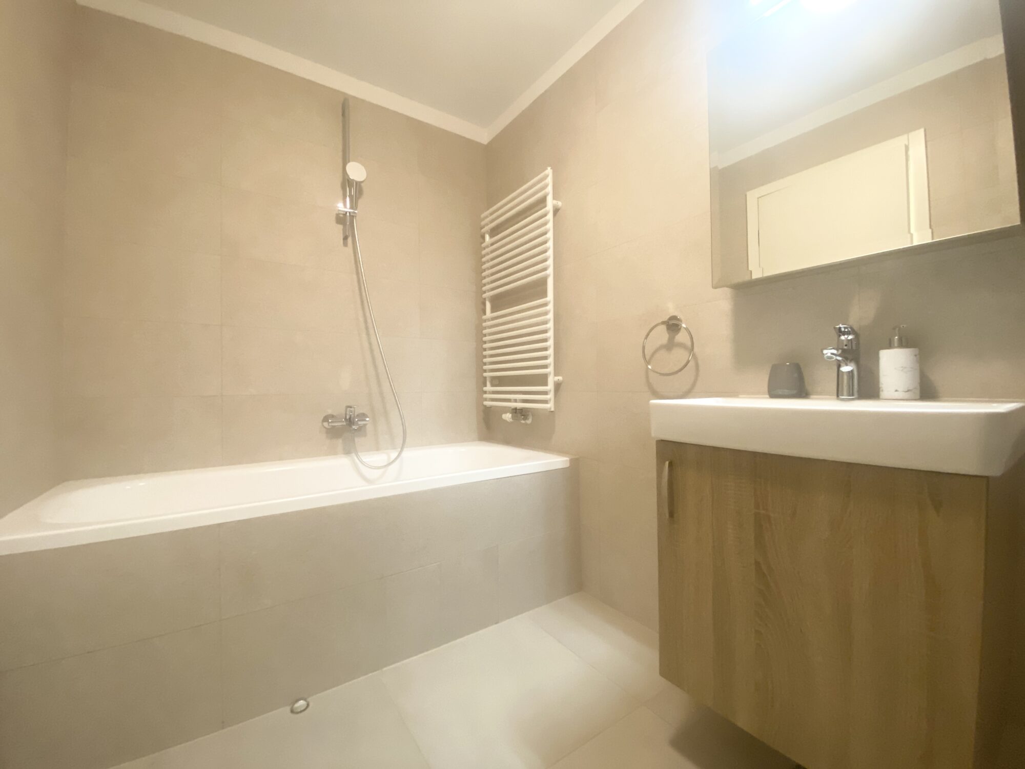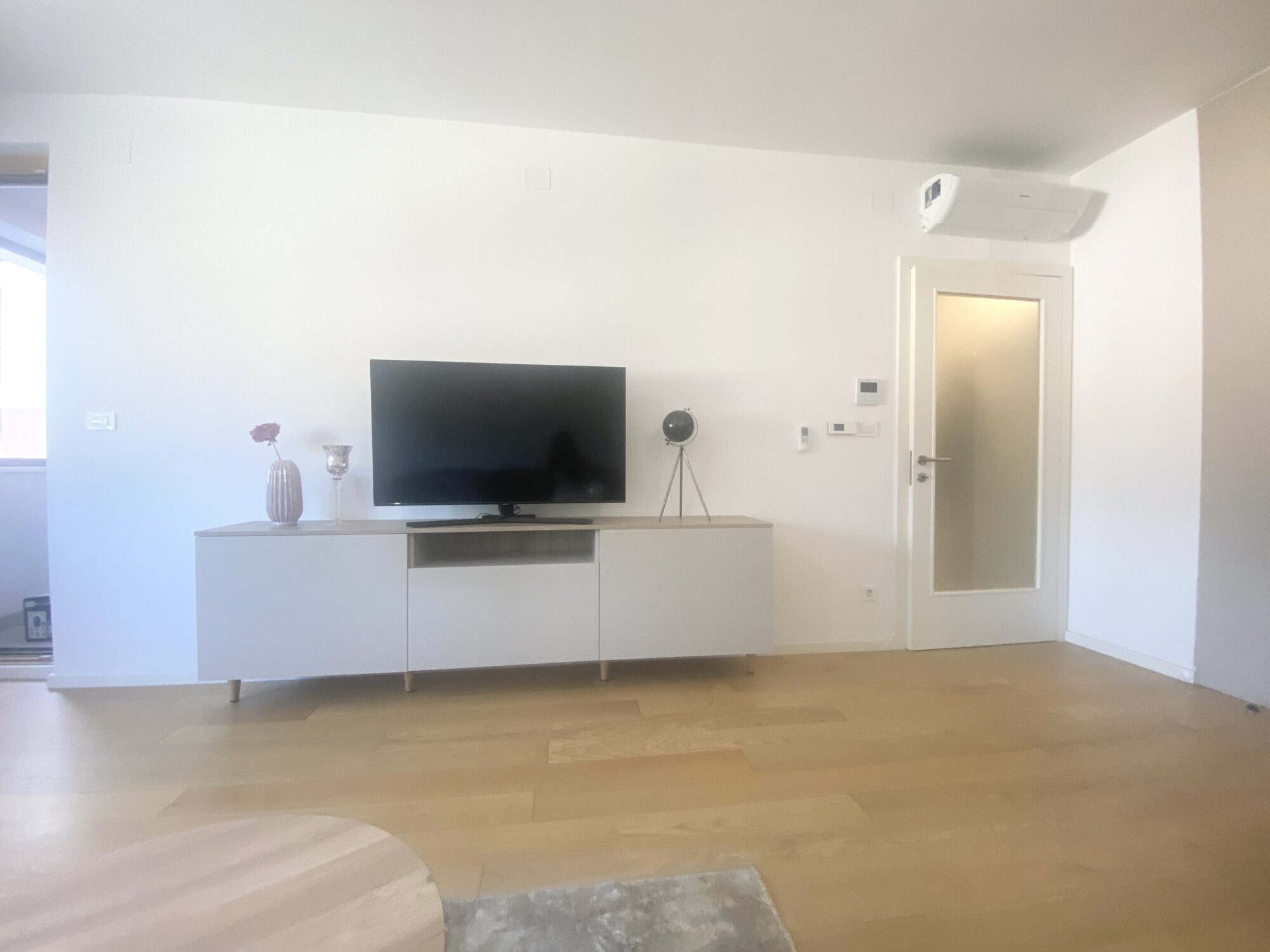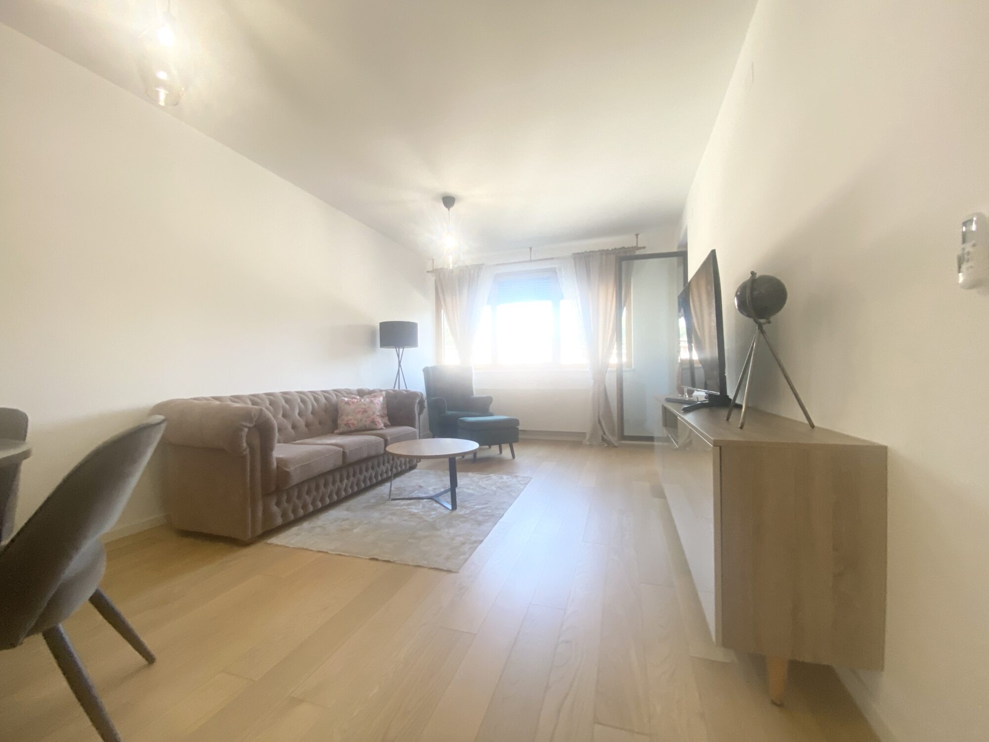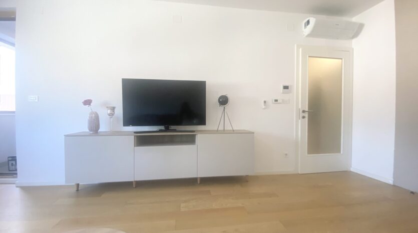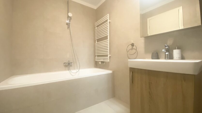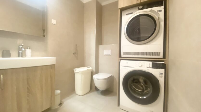 The apartment is completely furnished and fully equipped (TV, washing machine, dryer, vacuum cleaner, dishes, microwave,…)
