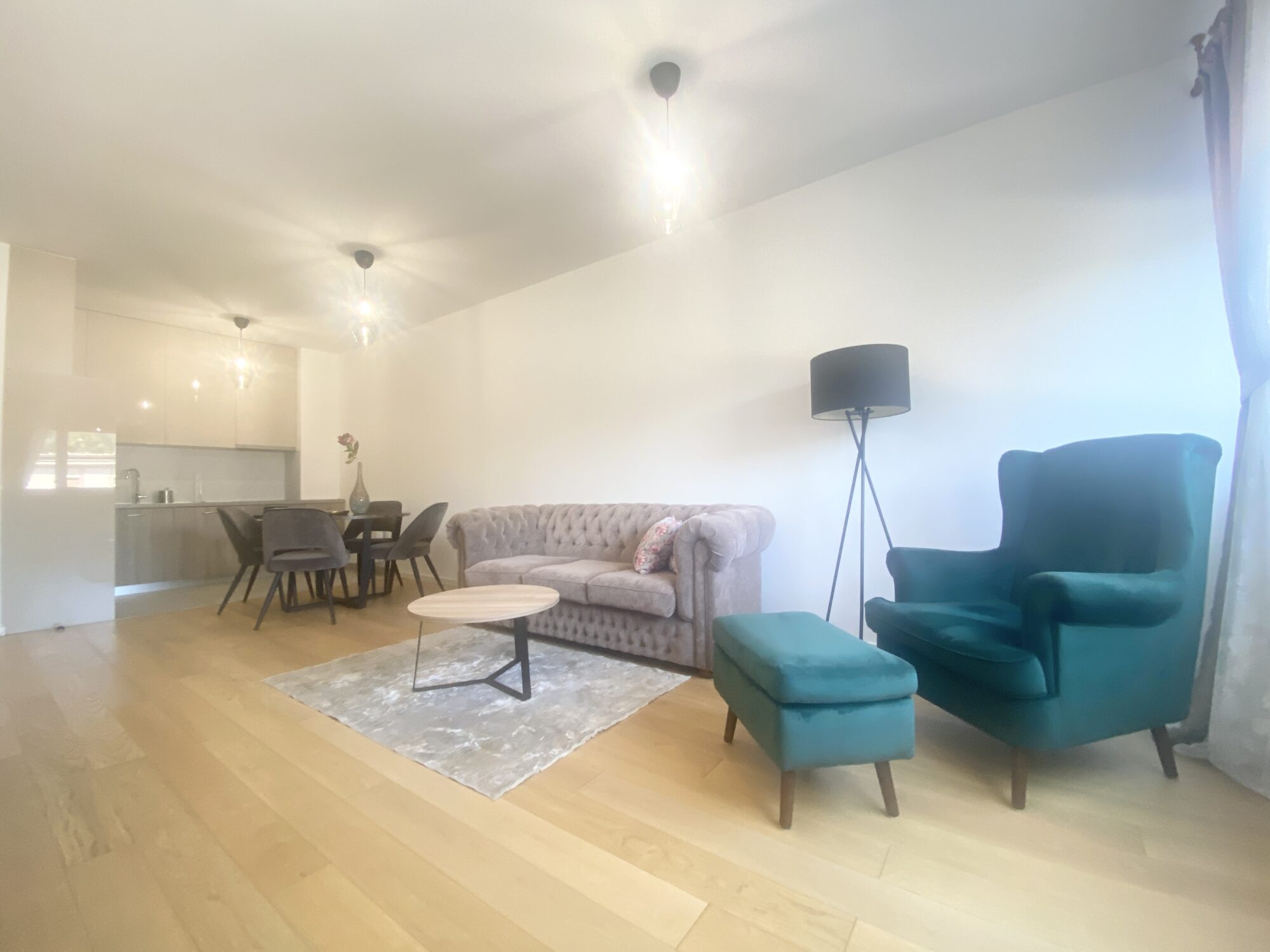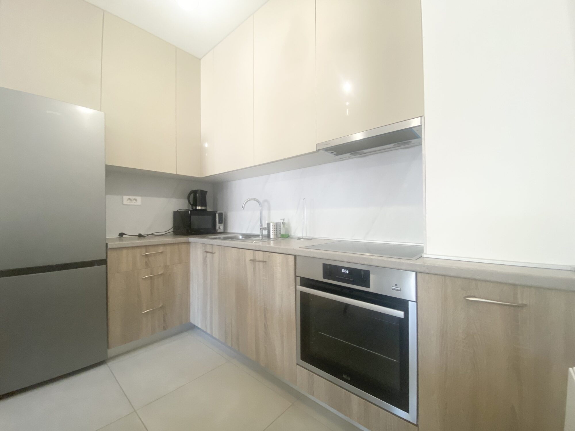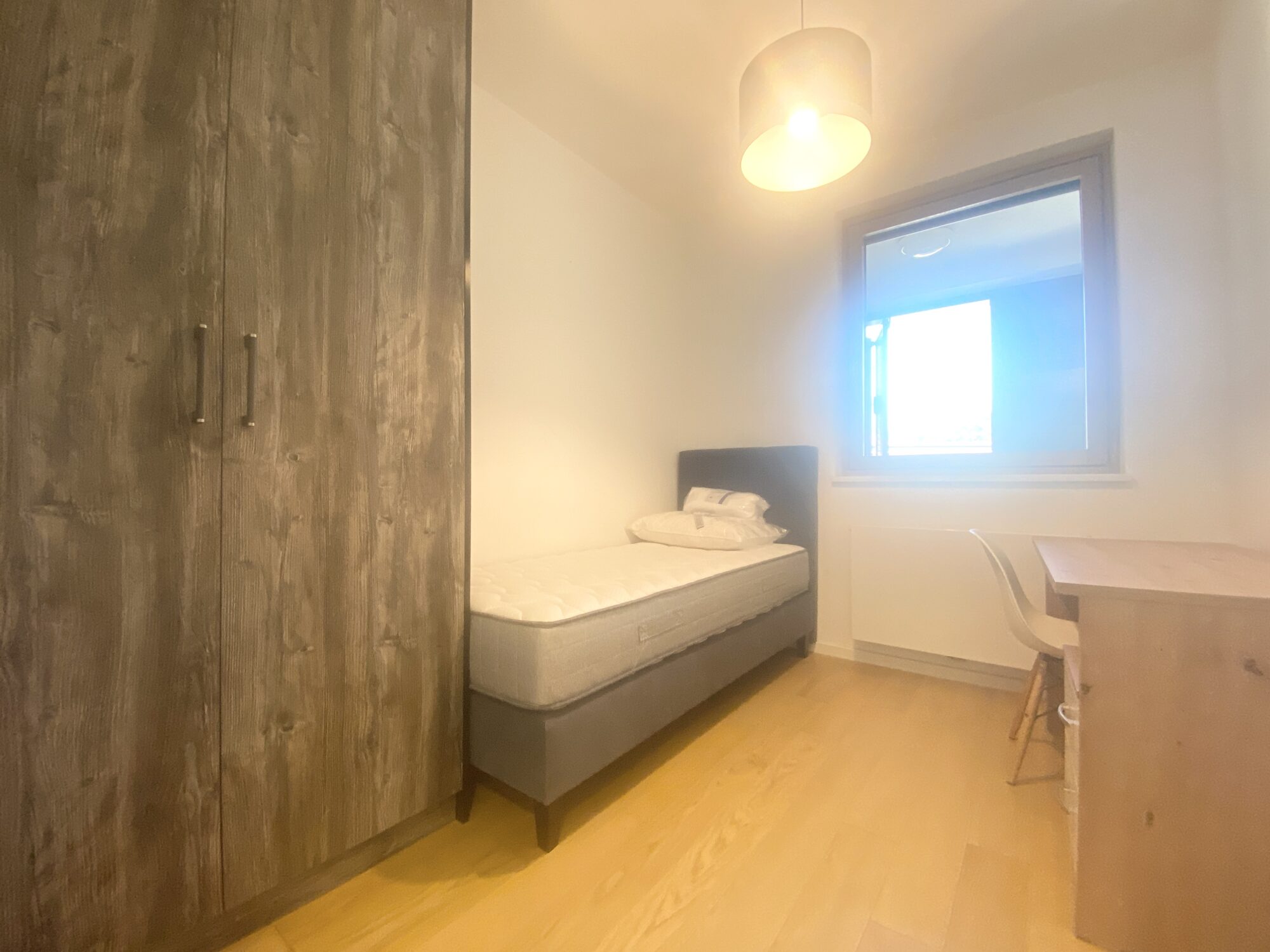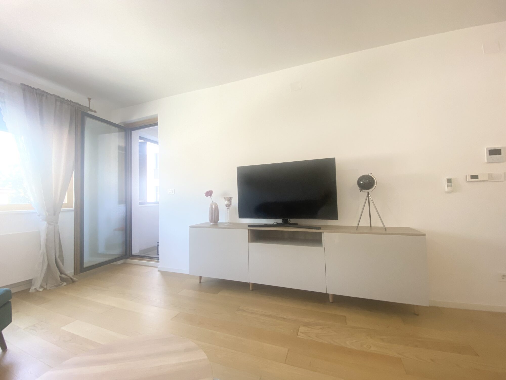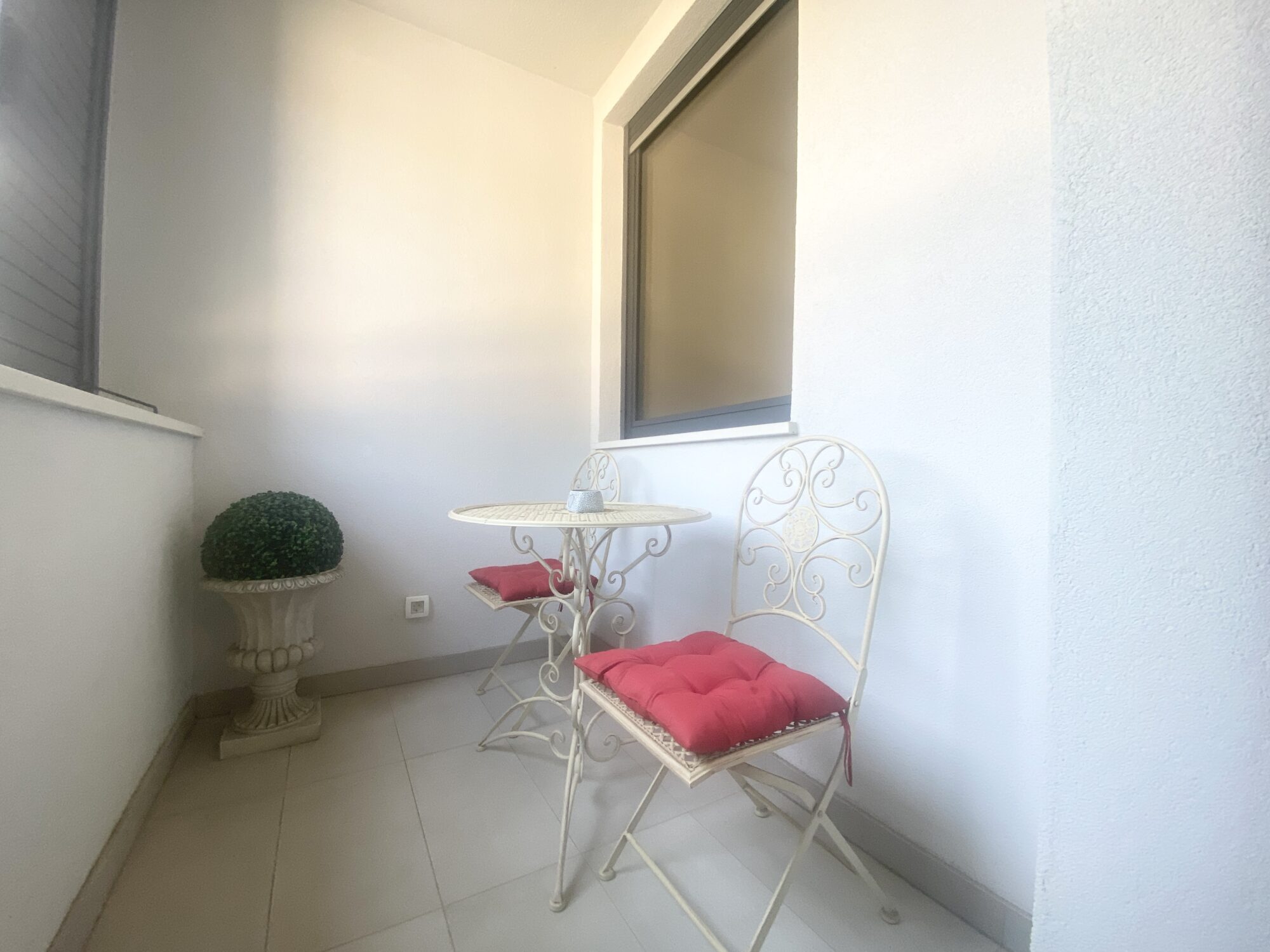 The apartment is completely furnished and fully equipped (TV, washing machine, dryer, vacuum cleaner, dishes, microwave,…)