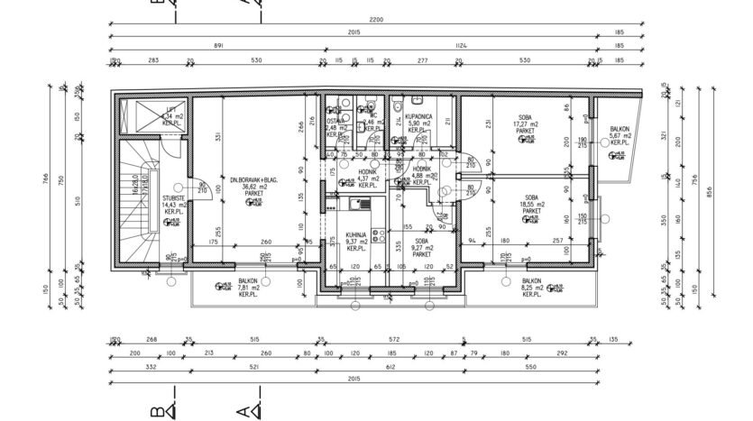The apartment consists of a living room with dining room (36.62m2), separate kitchen (9.37m2), 3 bedrooms (9.27m2, 17.27m2 and 18.55m2), bathroom (5.90m2), guest toilet (2.46m2), storage room (2.48m2), 2 hallways (4.37m2 and 4.55m2) and 3 covered balconies (8.25m2, 7.81m2 and 5.67m2).