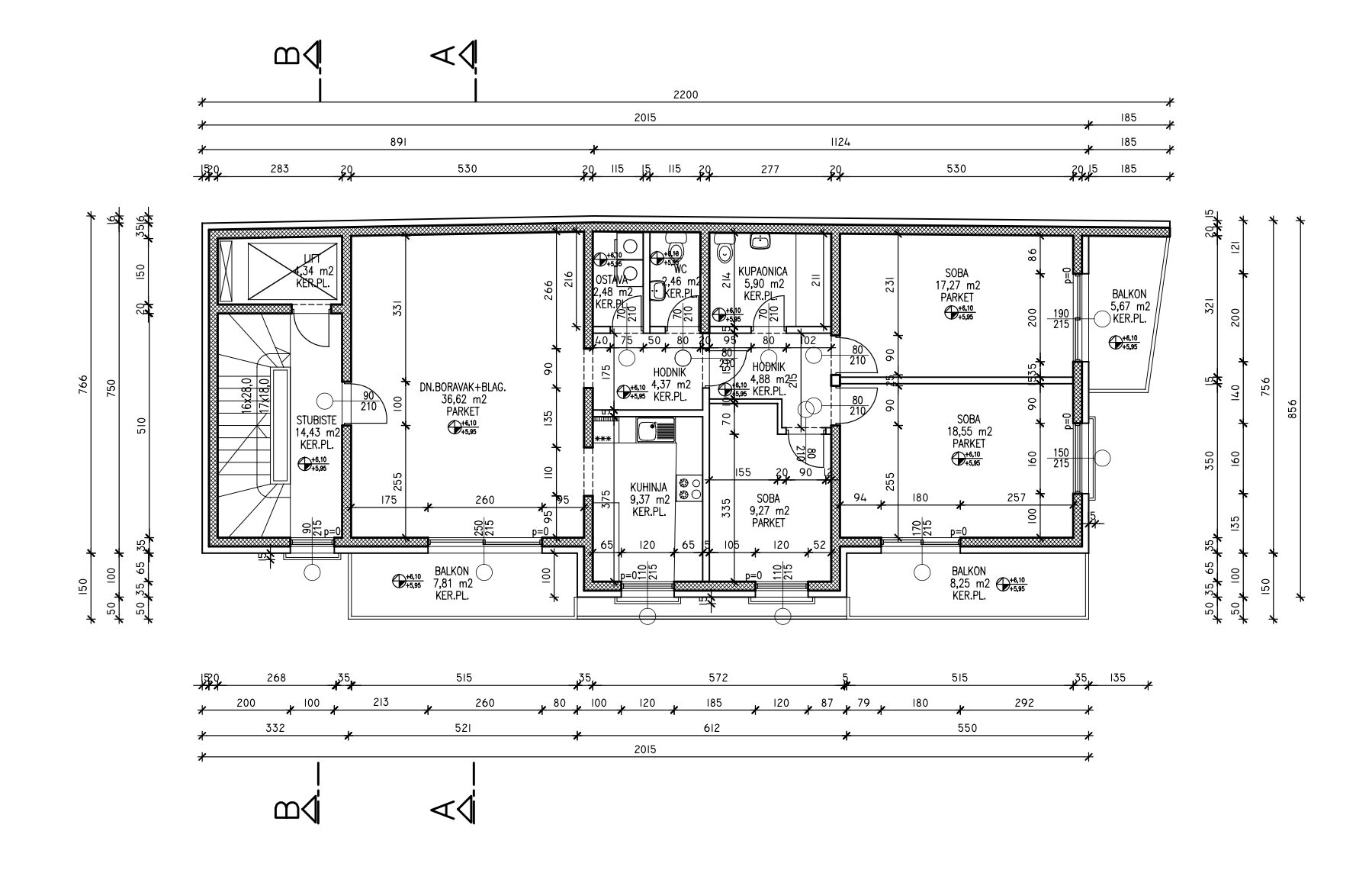 Load-bearing walls – reinforced concrete 20cm thick.