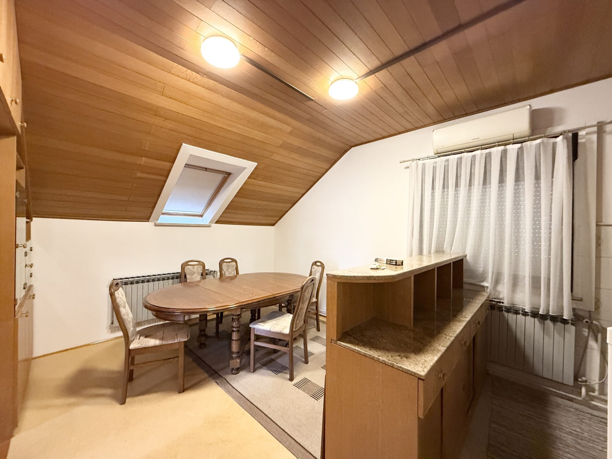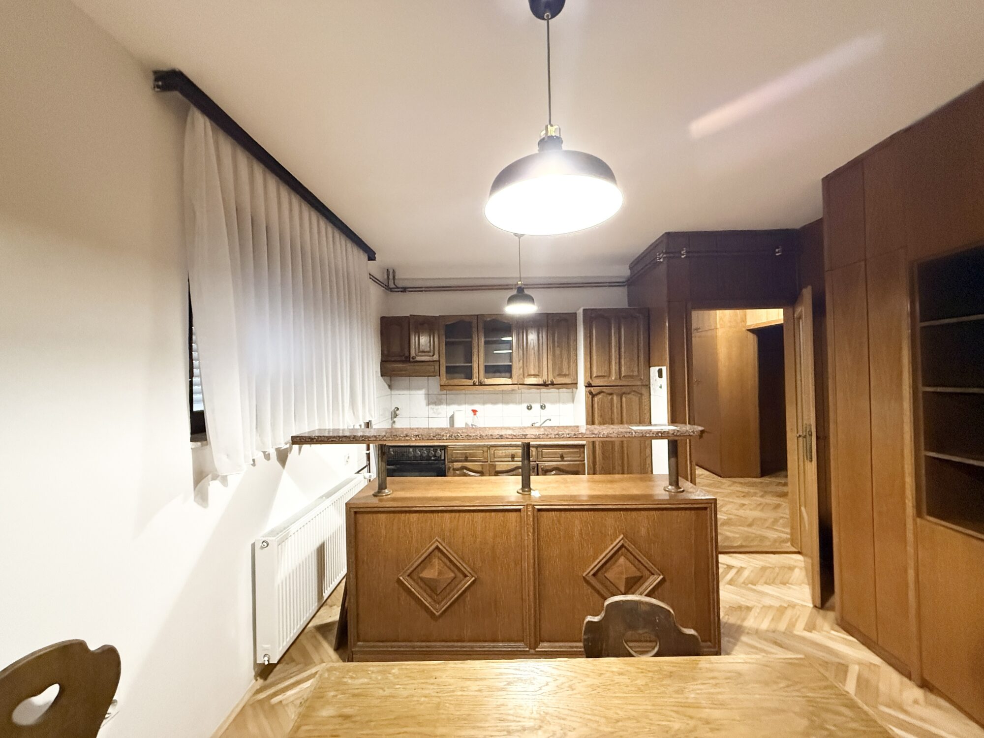 APARTMENT No. 2 is also fully renovated. It is located on the ground floor as well and has a surface area of 58 m² with a separate entrance. It consists of a kitchen at the entrance area, a separate living and dining room, two bedrooms, and a bathroom with a walk-in shower.